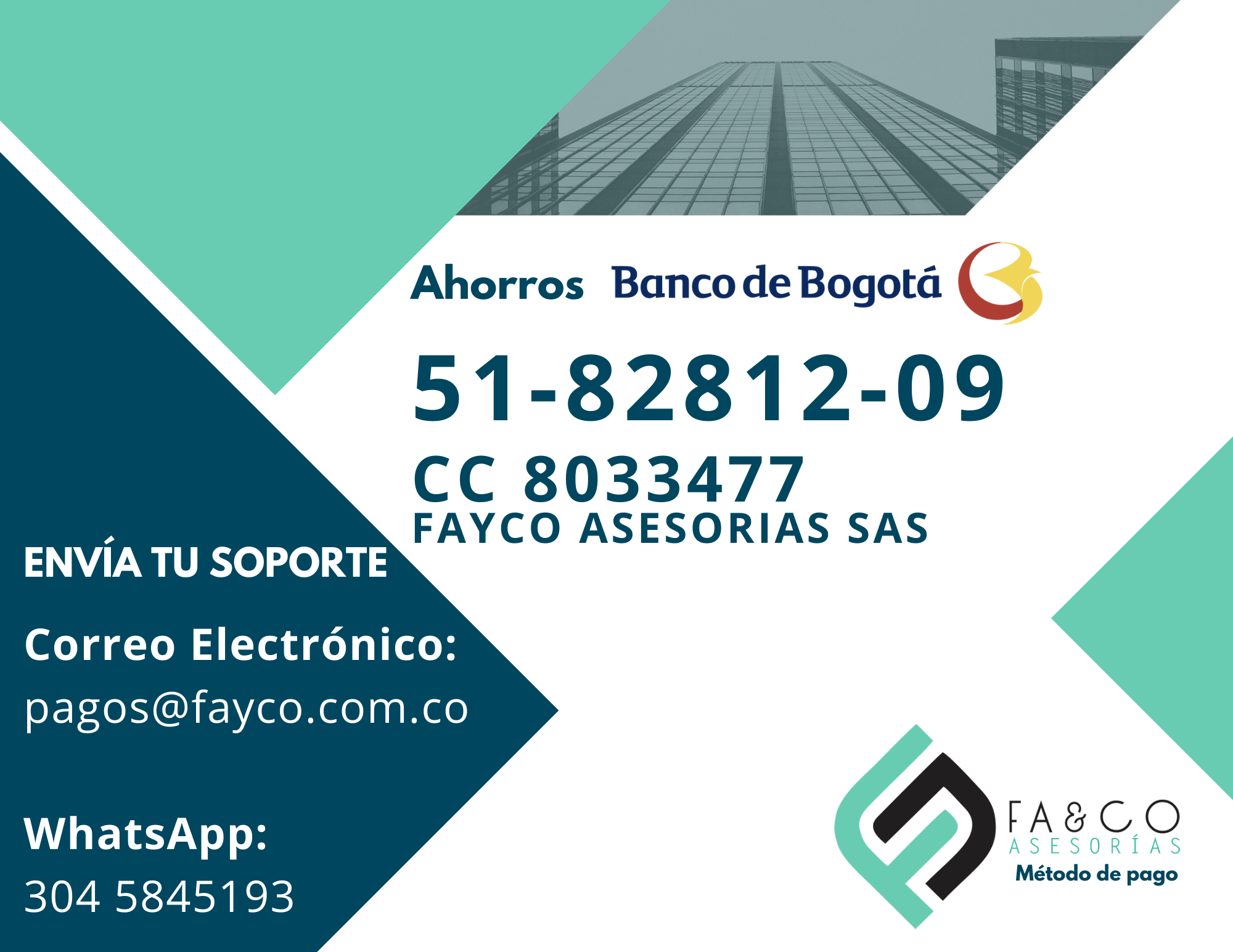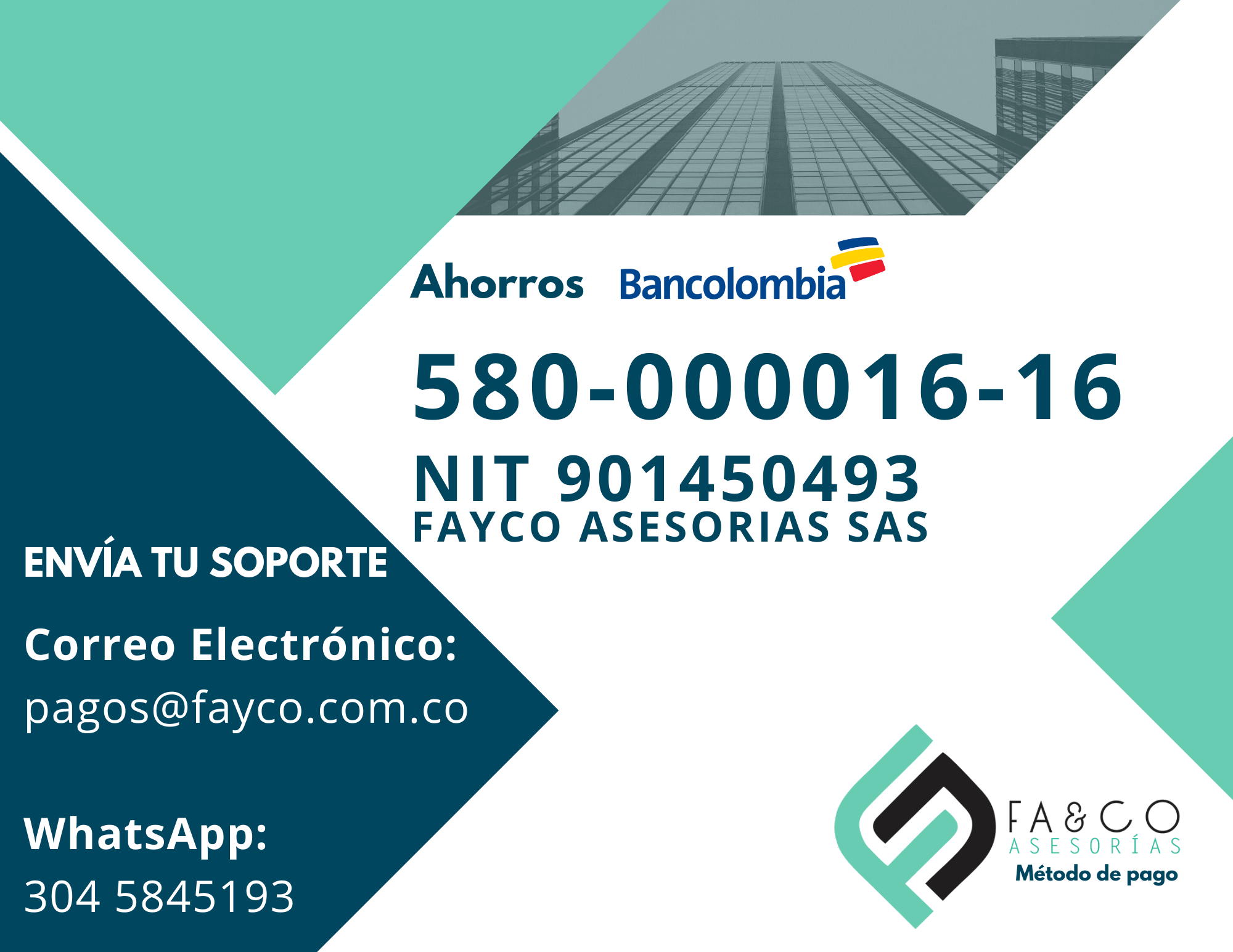 También puedes realizar una transferencia por medio de BANCOLOMBIA o BANCO DE BOGOTÁ